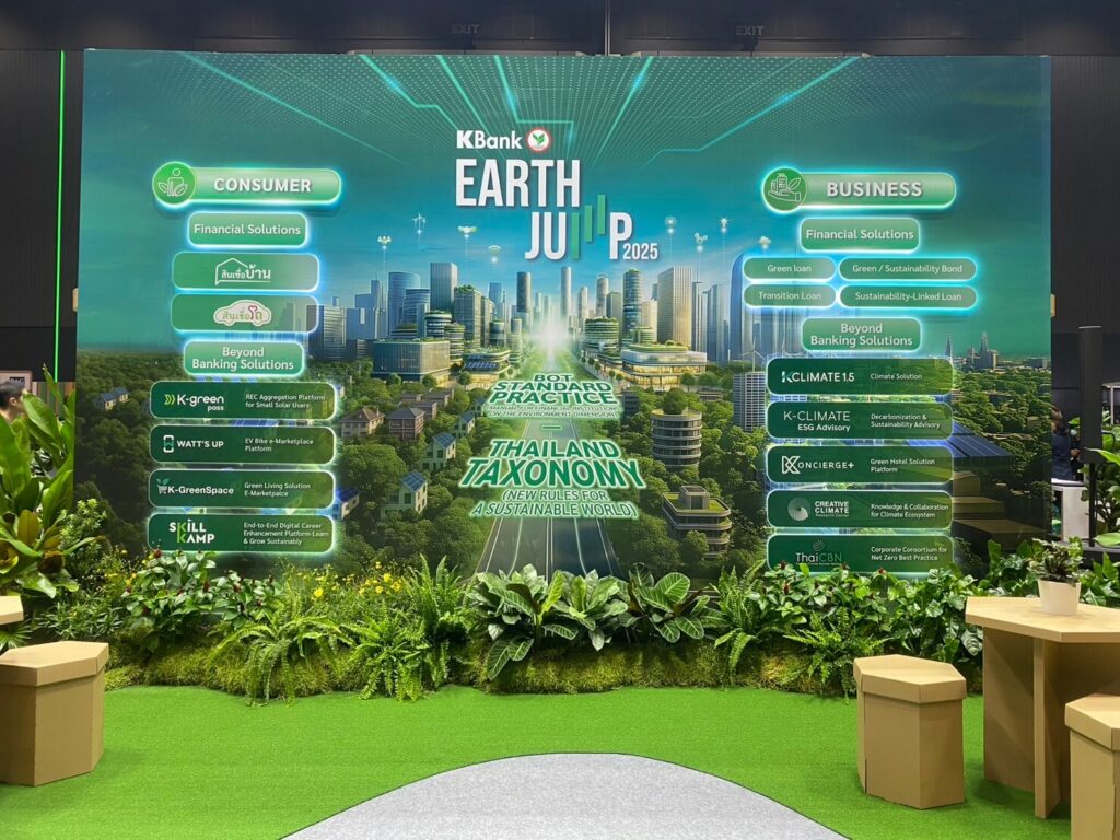 ในงาน EARTHJUMP2025: TRANSITION THRU TURBULENCE จัดโดย ธนาคารกสิกรไทย (KBANK) เวทีใหญ่เพื่อขับเคลื่อนการเปลี่ยนผ่านสู่เศรษฐกิจคาร์บอนต่ำ ผ่านนวัตกรรม ความร่วมมือ และทักษะในการรับมือกับความเปลี่ยนแปลง